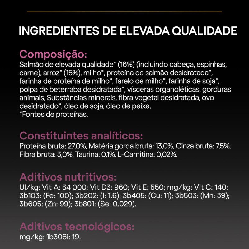 Desenvolvido com base em ciência nutricional de última geração, este alimento utiliza fontes de proteína cuidadosamente selecionadas, sendo o salmão o 1.º ingrediente, para ajudar a reduzir o risco de sensibilidades alimentares. A receita é formulada sem trigo, sendo ideal para cães com pele sensível.