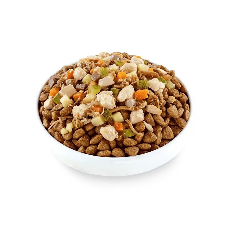 Este topping por ser dado por si só ou colocado em cima da comida seca do animal, para que fique mais humida e saborosa. Sirva até 3 saquetas por dia.