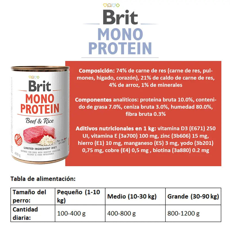 A Brit Care Mono Protein Beef & Rice é a escolha ideal para tutores que procuram um alimento saudável, nutritivo e seguro para cães com alergias alimentares, intolerâncias ou problemas digestivos. Com uma fórmula de proteína única de alta qualidade, esta deliciosa refeição combina 70% de vaca (carne e órgãos) com arroz, oferecendo uma nutrição com ingredientes limitados (apenas 4!) com sabor irresistível.