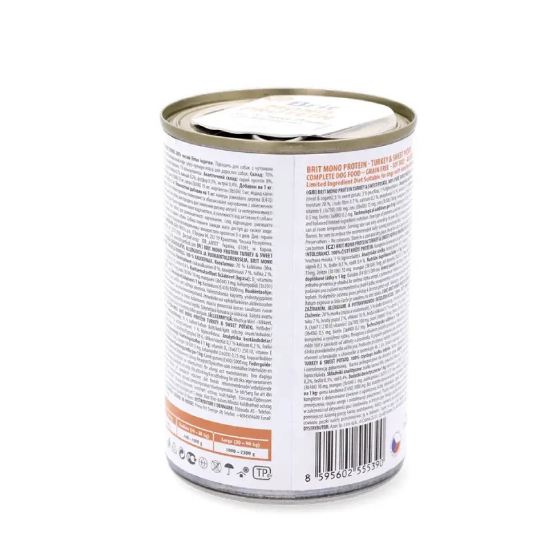 A Brit Care Mono Protein Turkey & Sweet Potato é a escolha ideal para tutores que procuram um alimento saudável, nutritivo e seguro para cães com alergias alimentares, intolerâncias ou problemas digestivos. Com uma fórmula de proteína única de alta qualidade, esta deliciosa refeição combina 70% de perú (carne e órgãos) com batata-doce, oferecendo uma nutrição com ingredientes limitados (apenas 4!) com sabor irresistível.