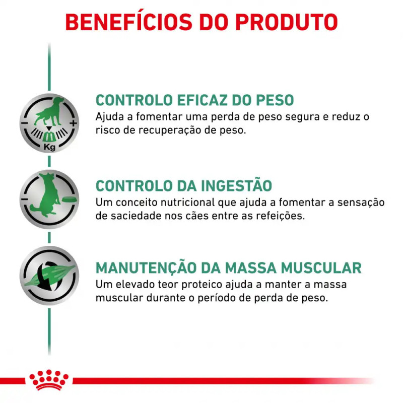 ROYAL CANIN® Satiety Weight Management é uma fórmula nutricionalmente equilibrada é feita à medida para ajudar a apoiar a perda de peso segura em cães, ao mesmo tempo que ajuda a evitar a recuperação de peso após o processo de perda.