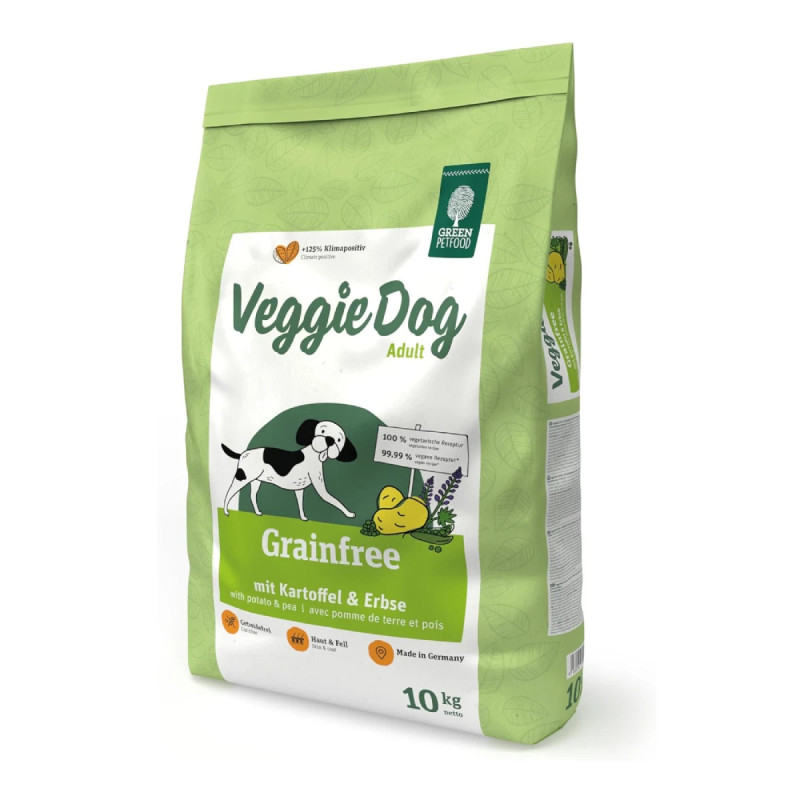 O VeggieDog Grainfood é um alimento seco de alta qualidade, desenvolvido especialmente para cães adultos com sensibilidades alimentares. Livre de cereais, a sua fórmula combina batata e ervilhas como principais fontes de proteína vegetal e hidratos de carbono, garantindo energia e vitalidade ao seu companheiro. As ervilhas fornecem aminoácidos essenciais, enquanto a batata contribui com nutrientes de fácil digestão.