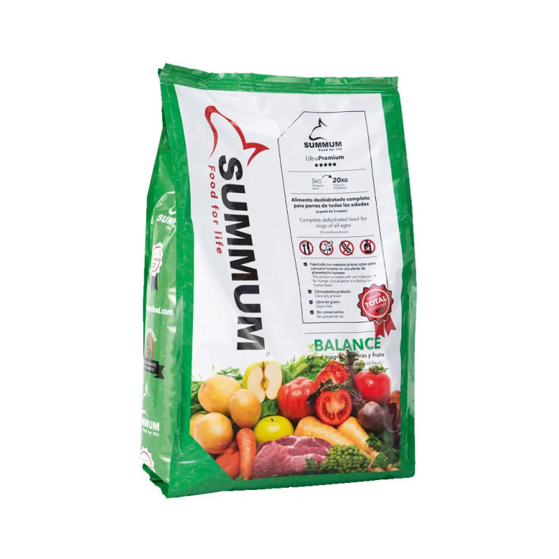 Fabricada numa unidade de produção alimentar humana e totalmente livre de cereais, corantes e conservantes, Summum Balance representa uma nova forma de alimentar o seu cão – prática, nutritiva e natural.