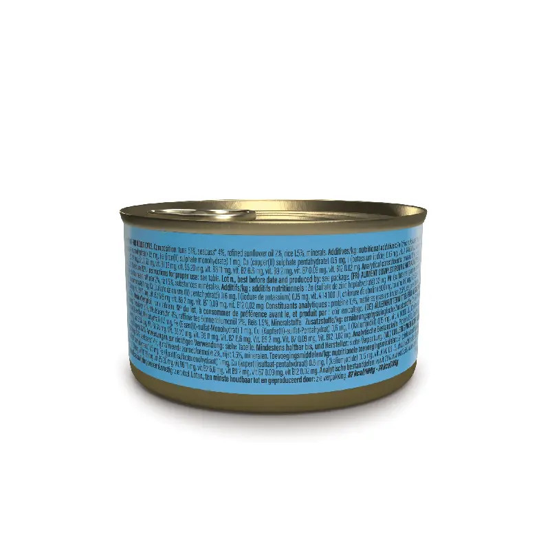 Esta lata possui 55% de peixe, sendo 51% atúm e 4% robalo. Se o seu gato adora peixe e sobretudo diferentes sabores (ou está farto de comer sempre o mesmo) então não vai conseguir a esta combinação requintada.