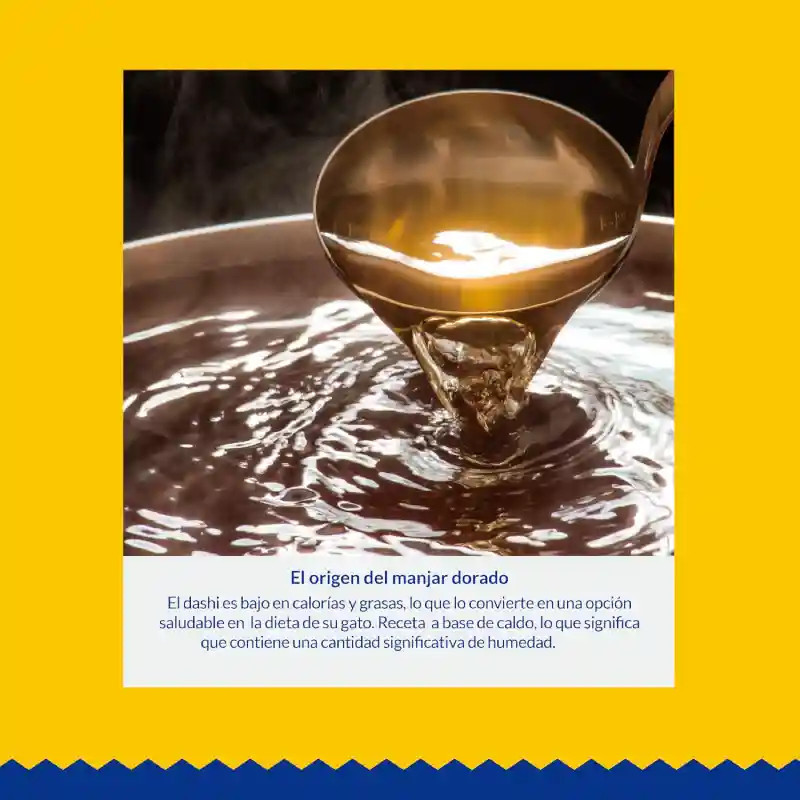 O Churu Cat Dashi Delights Receita de Frango e Atum, da Inaba, combina ingredientes premium como frango criado ao ar livre e atum selvagem num caldo tradicional japonês feito de atum seco (bonito flakes) — uma explosão de umami que agrada até os gatos mais exigentes.