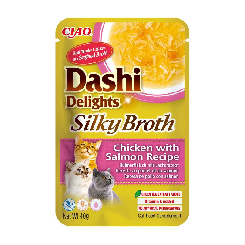 Eleve a experiência alimentar do seu gato com o Churu Cat Dashi Delights – Silky Broth, um caldo refinado e ultra-hidratante, inspirado no tradicional dashi japonês. Esta nova linha diferencia-se dos demais produtos Churu Dashi por conter ainda mais humidade, proporcionando uma hidratação superior — ideal para gatos exigentes ou com baixa ingestão de água.