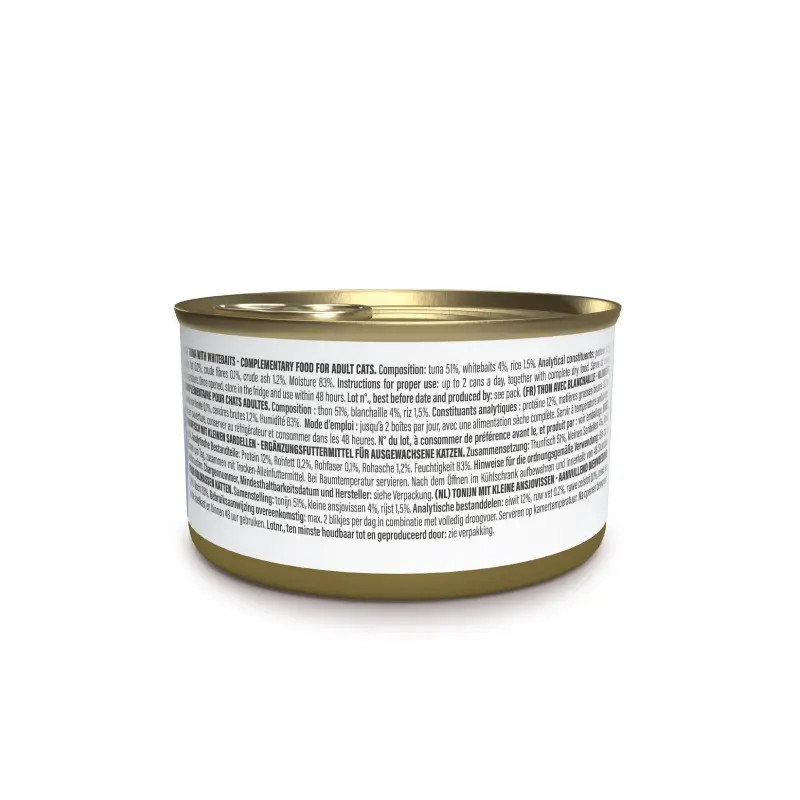 Esta lata possui 74,8% de peixe, sendo 70,5% atúm e 4% anchovas, mergulhados em caldo de peixe. Se o seu gato adora peixe e sobretudo diferentes sabores (ou está farto de comer sempre o mesmo) então não vai conseguir a esta combinação requintada.