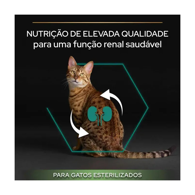 A sua fórmula avançada ajuda a manter um peso corporal saudável, uma necessidade essencial após a esterilização, e contribui para a saúde do trato urinário, promovendo a diluição da urina. Enriquecido com antioxidantes, como a vitamina E, reforça as defesas naturais, apoiando uma vida longa e saudável.