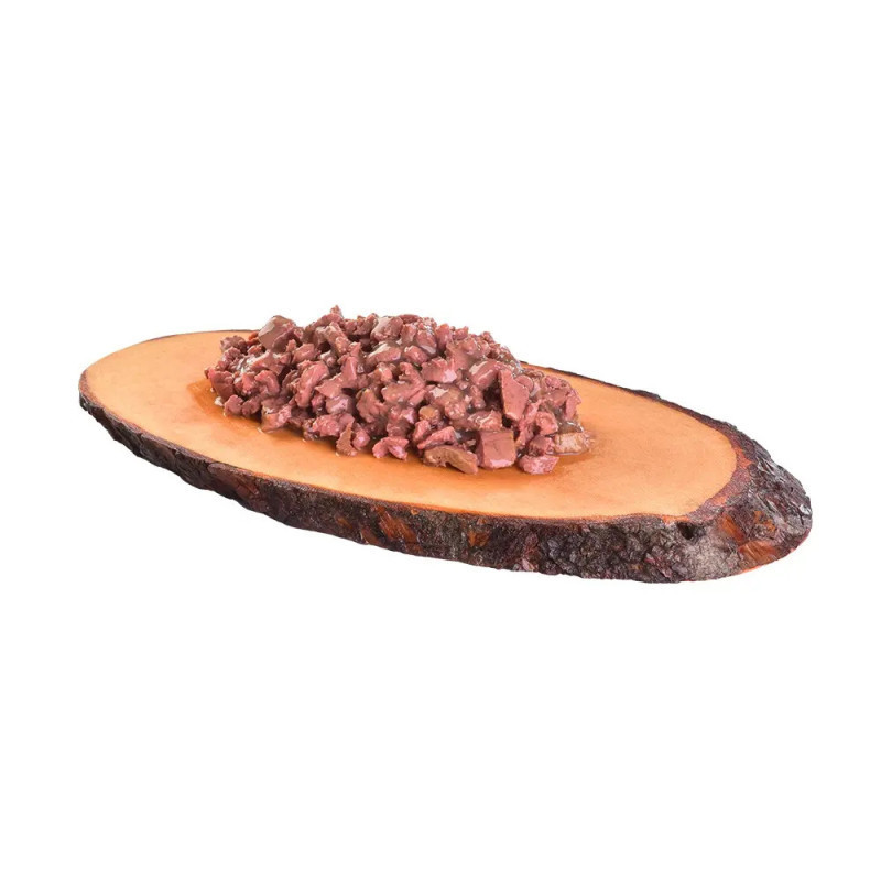 85% de carne em filés (71% de frango, 14% de coelho), 12% de caldo, 1% de calêndula, 1% de óleo de linhaça, 0,5% de minerais, 0,5% de amido vegetal.