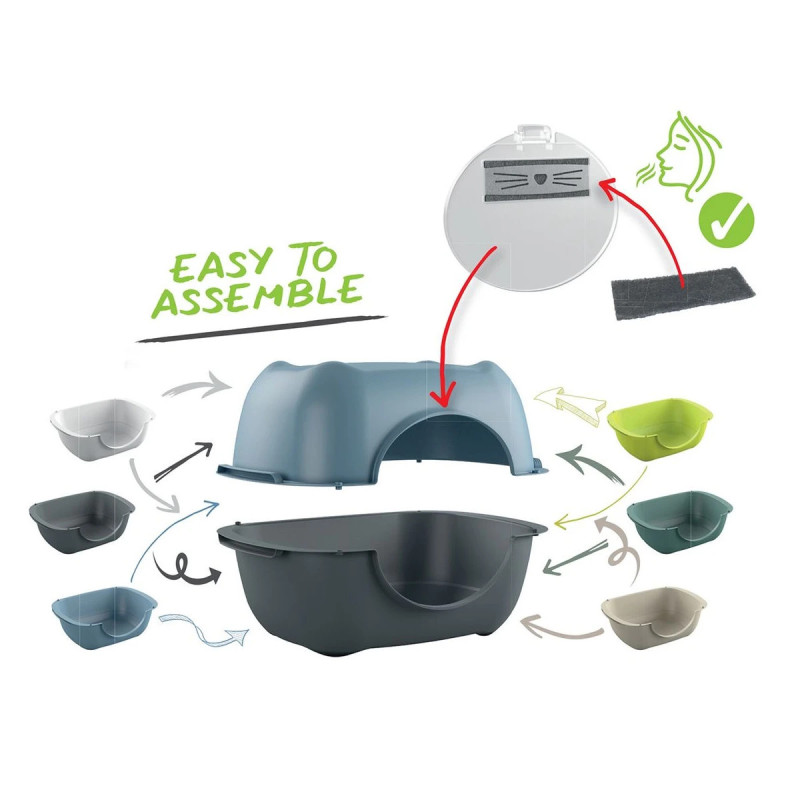 A caixa de areia Bella é o mais novo membro da família MyPet. Este tabuleiro com abas altas está disponível em várias cores e pode ser combinado como quiser. Precisa apenas de um vaso sanitário simples ou talvez de um vaso sanitário completo com tampa e porta? Pode compor a sua Bella de acordo com seus desejos.