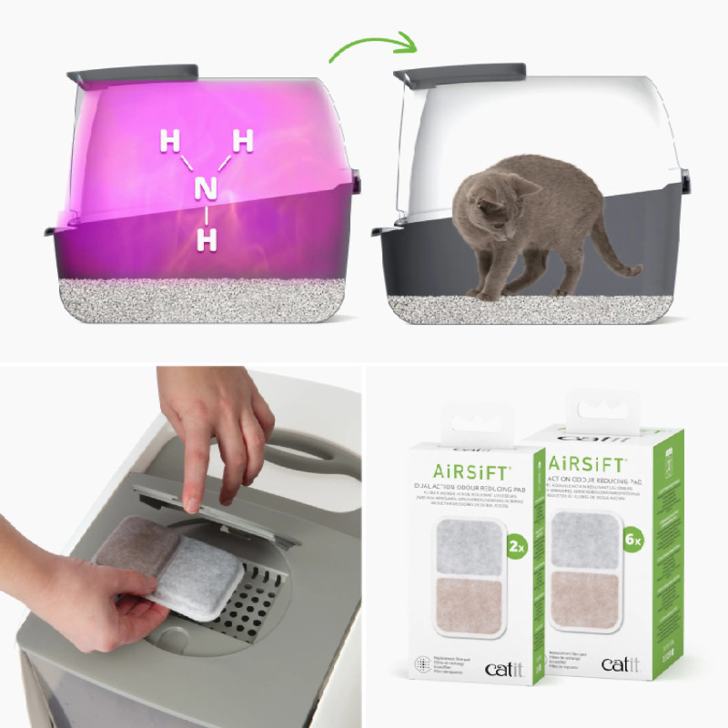 Os filtros Catit Airsift ajudam a evitar a acumulação de amoníaco. Isto faz com que a caixa de areia seja um ambiente seguro e agradável para o seu amigo felino.