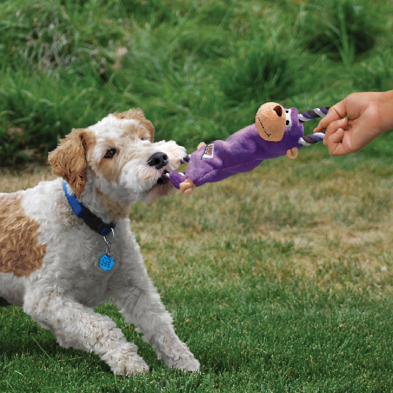 O KONG Tugger Knots Moose é um brinquedo resistente e interativo, perfeito para cães que adoram puxar, abanar e abocanhar. No seu interior, possui cordas com nós que proporcionam uma sensação realista e satisfazem o instinto natural de mordida. As cordas estendem-se para fora do brinquedo, criando pegas em ambas as extremidades, ideais para brincadeiras de puxar entre o cão e o tutor ou entre dois cães, sendo que neste último caso é necessário supervisão se algum deles for mais destruidor.