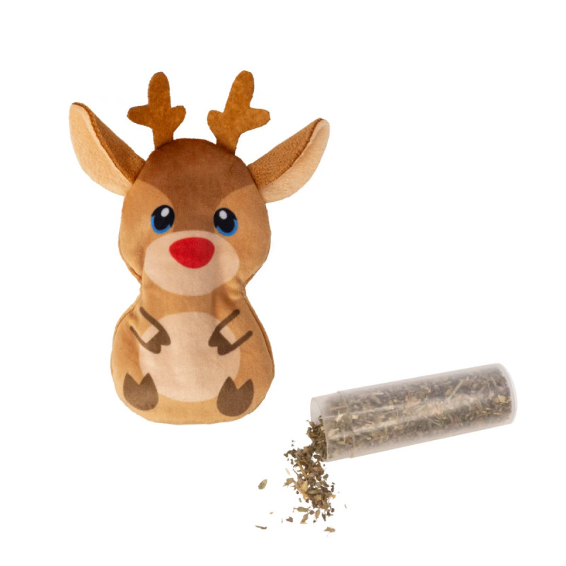 Leve para dar patadas e morder, o que satisfaz os instintos de caça do seu gatinho. Esta adorável rena proporciona um exercício enriquecedor para gatos que vivem no interior.