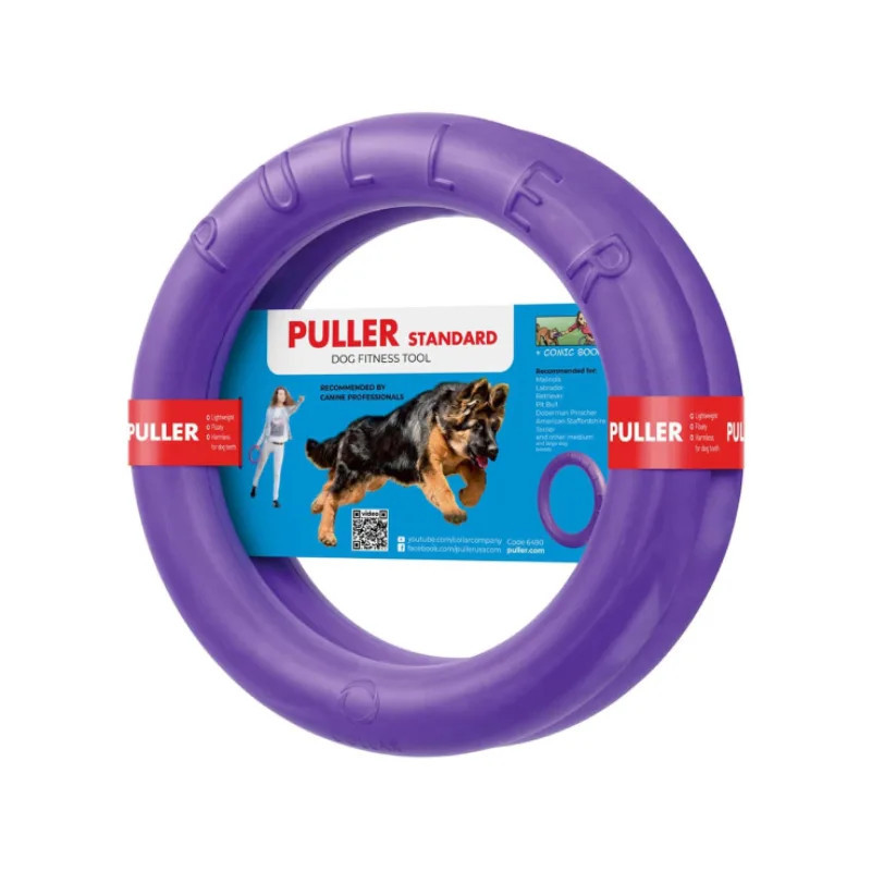 O Puller consiste em dois anéis macios que são utilizados para o cão fazer diferente tipo de exercícios. Não julgue que um é extra - nada disso! Ao utilizar os dois anéis o cão ficará mais motivado, em constante movimento e habituado a mudar de um para o outro durante o jogo. Mais do que um brinquedo, o Puller é usado em desporto canino para aumentar a resistência do animal!