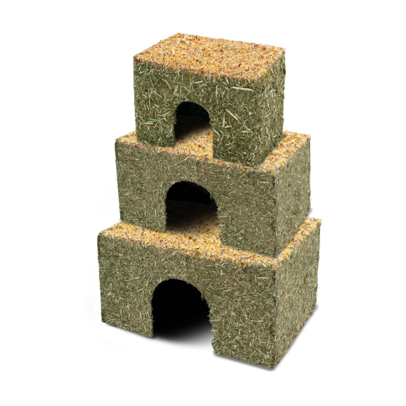 Além de ser um abrigo confortável para hamsters, gerbil, ratos, coelhos e porquinhos-da-índia, o Hay House também contribui para o bem-estar dentário dos roedores: a mastigação constante promove o desgaste fisiológico dos dentes, que crescem ao longo da vida.