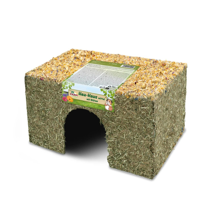 A JR Farm Hay House com Telhado de Flores é mais do que um acessório: é uma combinação perfeita de refúgio, nutrição, enriquecimento e decoração – tudo num único produto totalmente natural! Ideal para quem deseja oferecer aos seus animais um ambiente estimulante, saudável e irresistivelmente saboroso.