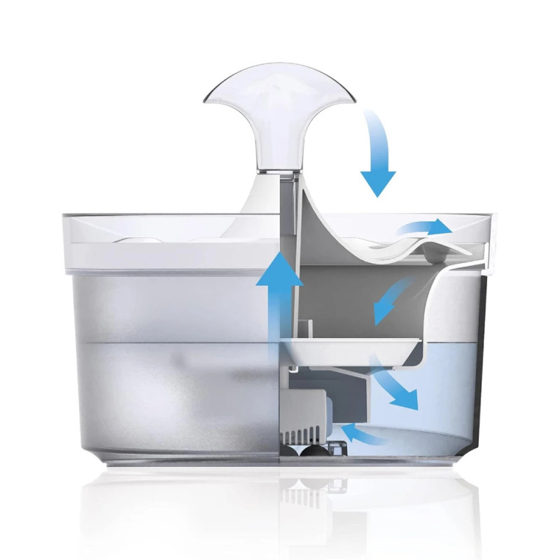 A fonte inclui um filtro de tripla ação para manter a água potável do seu cão livre de pelos e detritos.