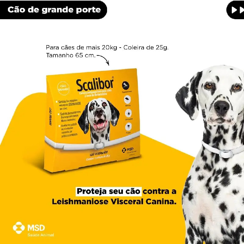 Scalibor® é uma coleira antiparasitária externa para cães que contém deltametrina, um inseticida e acaricida com propriedades repelentes (antialimentação). Desenvolvida com tecnologia patenteada, proporciona proteção eficaz e contínua contra os principais vetores de doenças parasitárias.