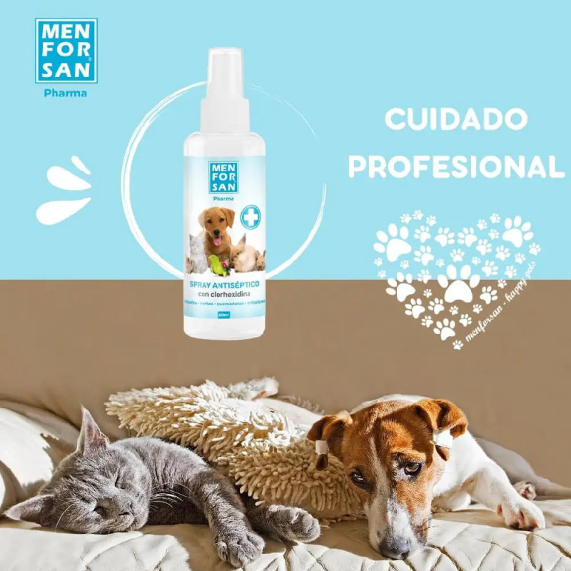 O antisséptico spray com clorexidina para animais de estimação é uma solução aquosa, indicado como antisséptico desinfetante para uso veterinário. Este produto auxilia na higiene e desinfecção da pele, além de tratar feridas e proteger a pele para cicatrizar arranhões, cortes, rasgos, queimaduras, irritações e feridas pós-operatórias.