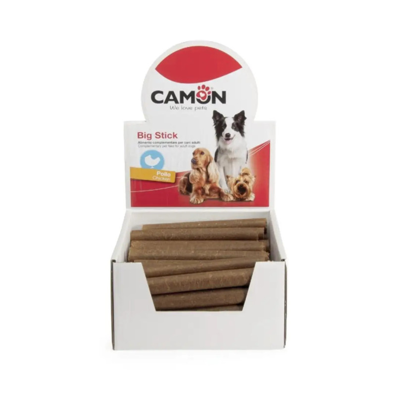 O Beef Stick da Camon é um snack complementar em forma de cilindro (cerca de 17 cm de comprimento e 1,8 cm de diâmetro), muito resistente e durável que convida à mastigação prolongada, uma atividade essencial para o bem-estar físico e mental do cão. Tem aparência semelhante a um charuto, sem corantes artificiais, e foi especialmente formulado para cães adultos que gostam de roer persistentemente.