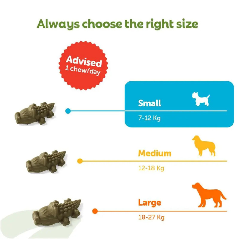 Os snacks da Whimzees são feitos com ingredientes 100% naturais e a sua textura à base de plantas ajudará a remover a placa bacteriana e o tártaro dos dentes do seu animal de estimação enquanto ele os mastiga. Estes originais snacks em forma de aligator não só deliciam o seu animal de estimação como também cuidam da sua saúde dentária enquanto os consomem. Os snacks da Whimzees são feitos com ingredientes 100% naturais e a sua textura à base de plantas ajudará a remover a placa bacteriana e o tártaro dos dentes do seu animal de estimação enquanto ele os mastiga.