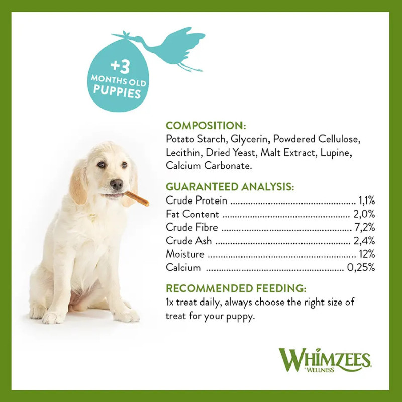 Cuide do sorriso do seu cachorro desde cedo com Whimzees Puppy Grain-Free Dental Dog Treats (XS/S) — o petisco dental 100% natural, especialmente desenvolvido para cães com mais de 3 meses de idade e peso entre 2,3 kg e 9 kg.