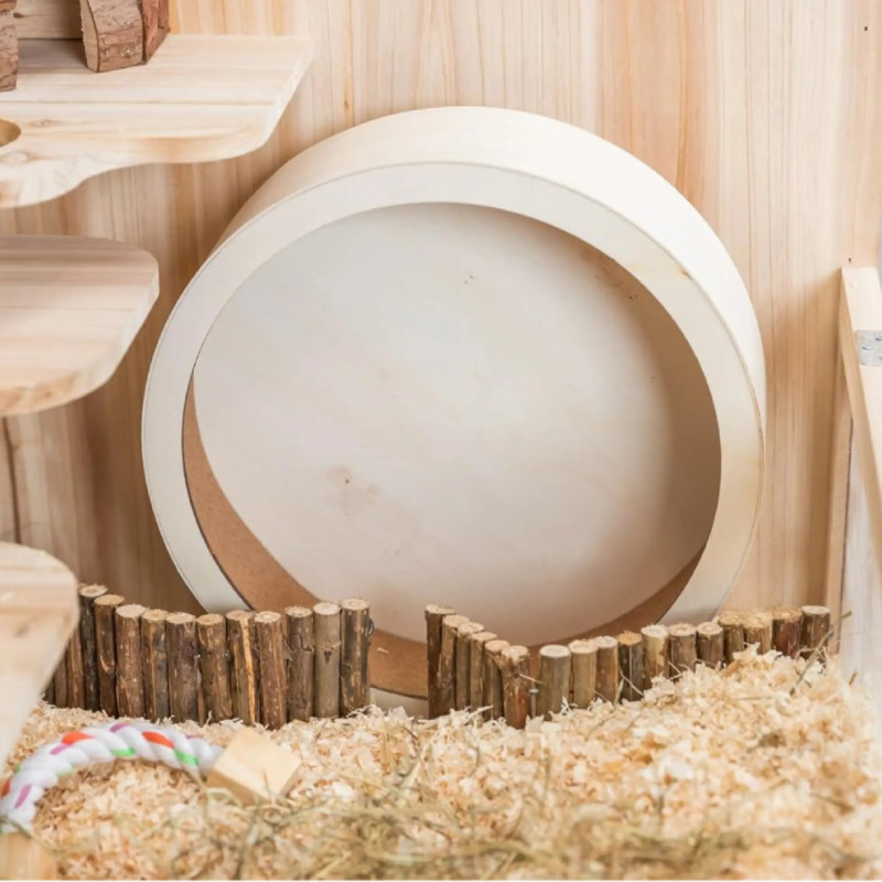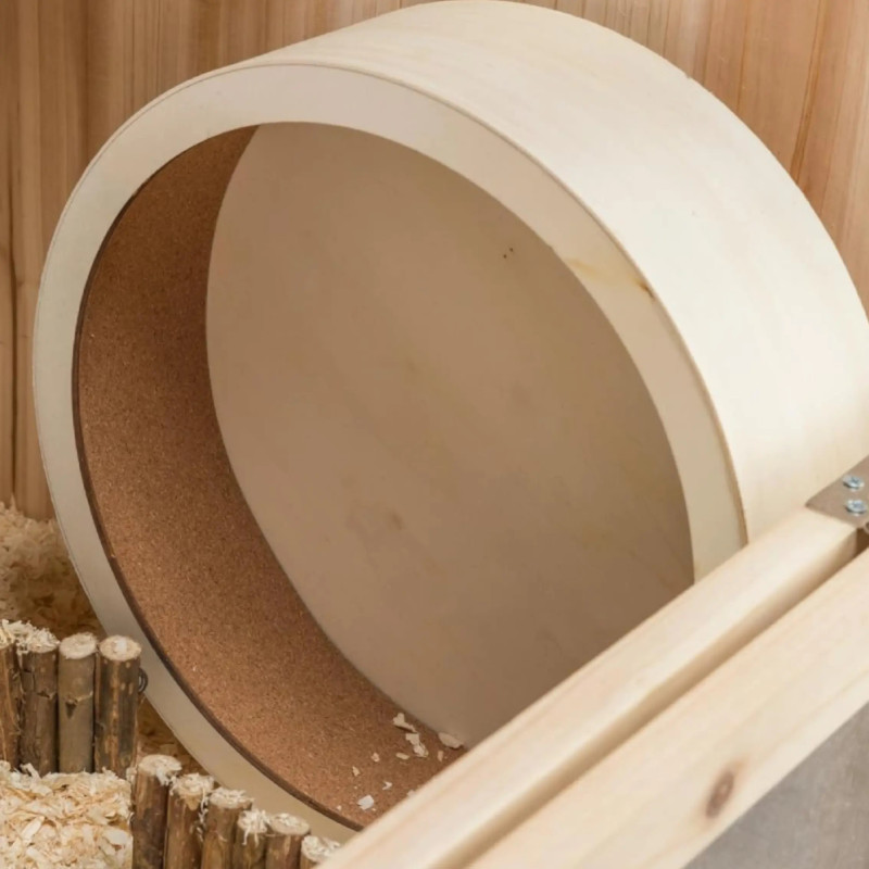 - Design natural e sustentável: fabricada em madeira não tratada, esta roda é durável e confere um visual natural ao habitat do seu animal.