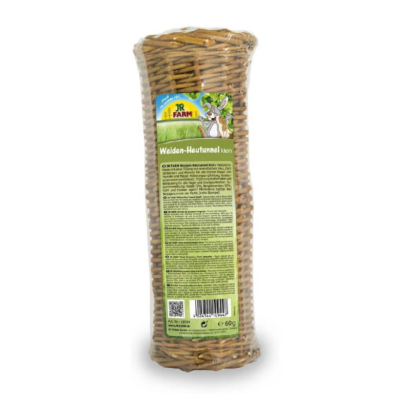 O JR Farm Willow Tutunnel é um túnel natural e comestível, perfeito como brinquedo, abrigo e alimento complementar para pequenos roedores. Fabricado com vime não tratado e recheado com feno aromático de prados montanhosos da Baviera, este túnel oferece diversão, conforto e nutrição de forma totalmente natural.