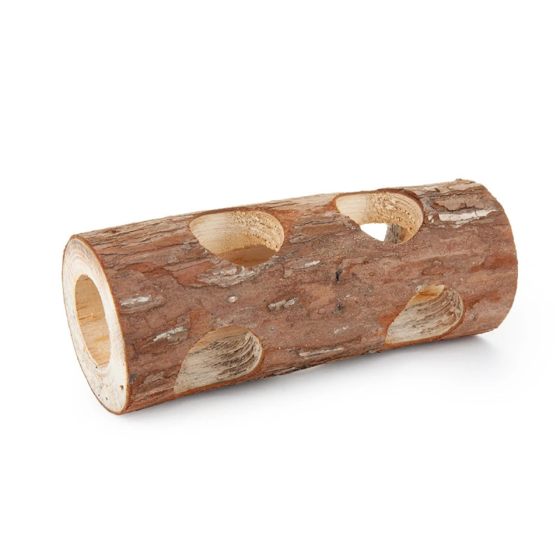 Um acessório bonito, resistente e totalmente natural para enriquecer o habitat do seu pequeno roedor! O túnel é fabricado em madeira maciça com casca natural, perfeita para roer e explorar — uma combinação ideal entre diversão, segurança e estímulo ambiental.