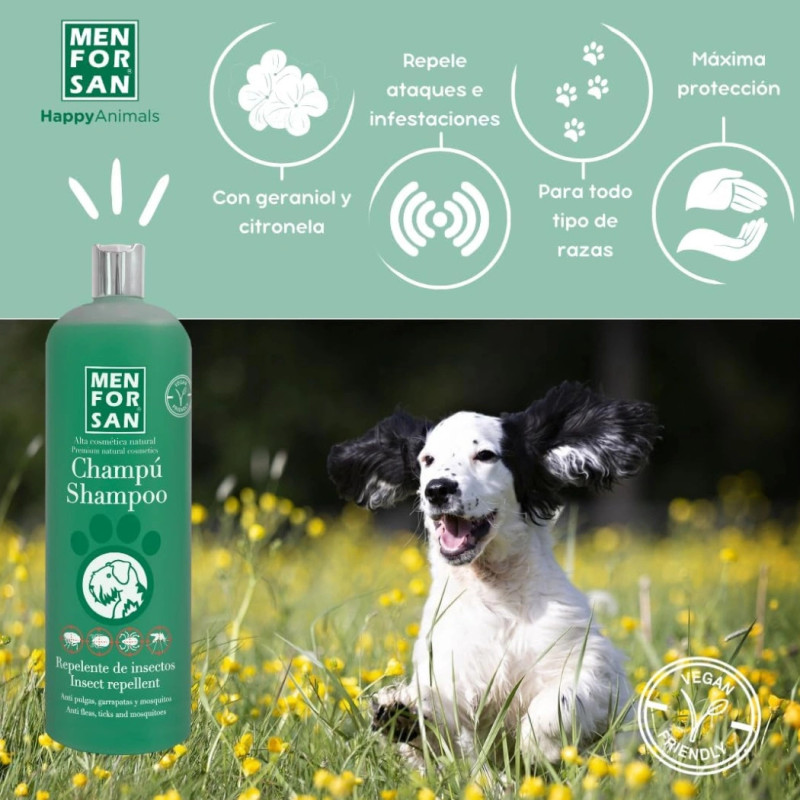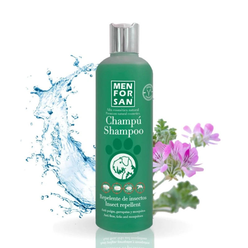 Este champô da Menforsan possui citronela e geraniol, repelentes naturais muito eficazes para eliminar pulgas, carrapatos, ácaros e piolhos durante o processo de lavagem.
