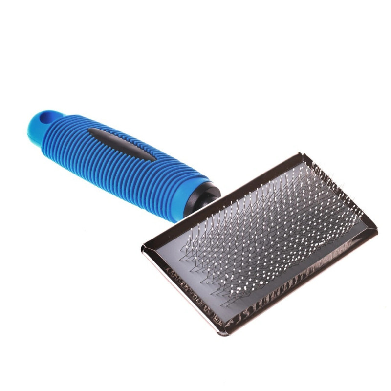 Escova de plástico com agulhas macias com acabamento em bolinhas é especialmente recomendada para cães de pelos curtos e médios com subpêlo liso e para animais de pele macia.