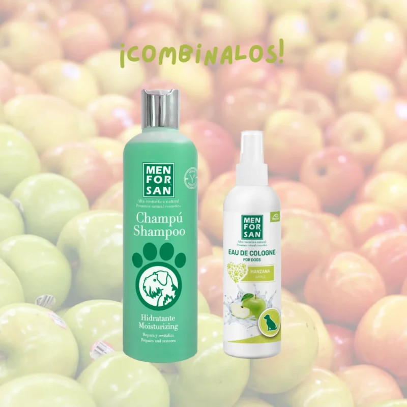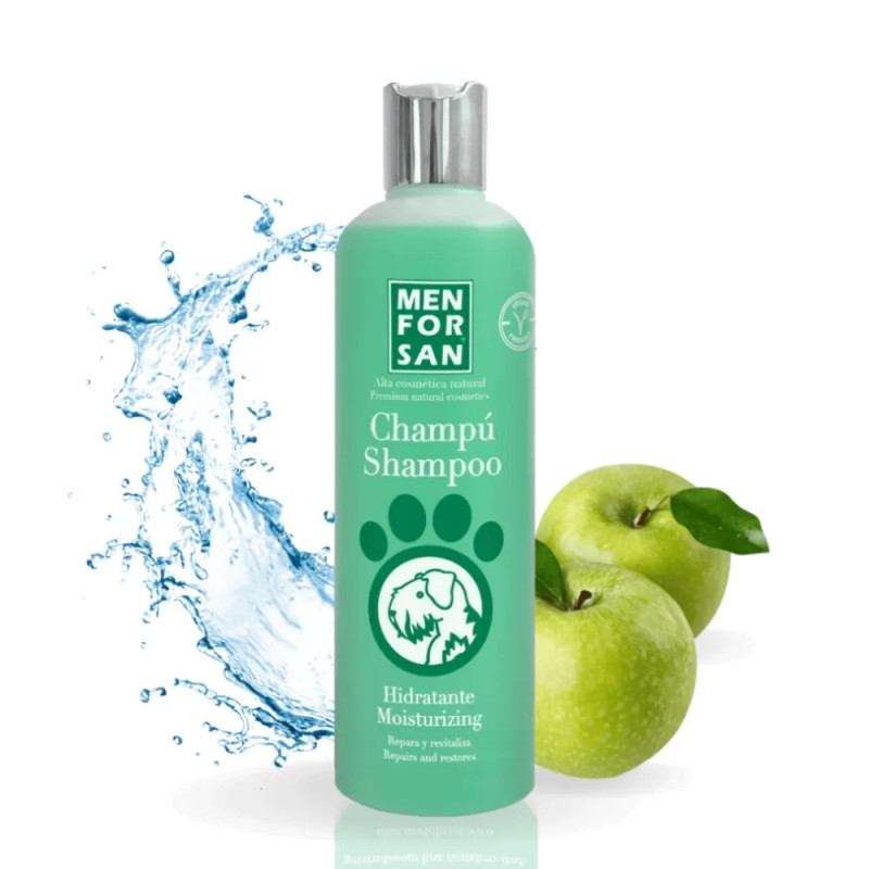 Transforme o banho do seu cão em um momento de cuidado e frescor natural com o Champô Hidratante Maçã Verde Menforsan