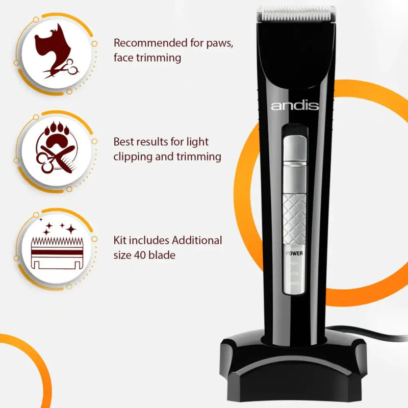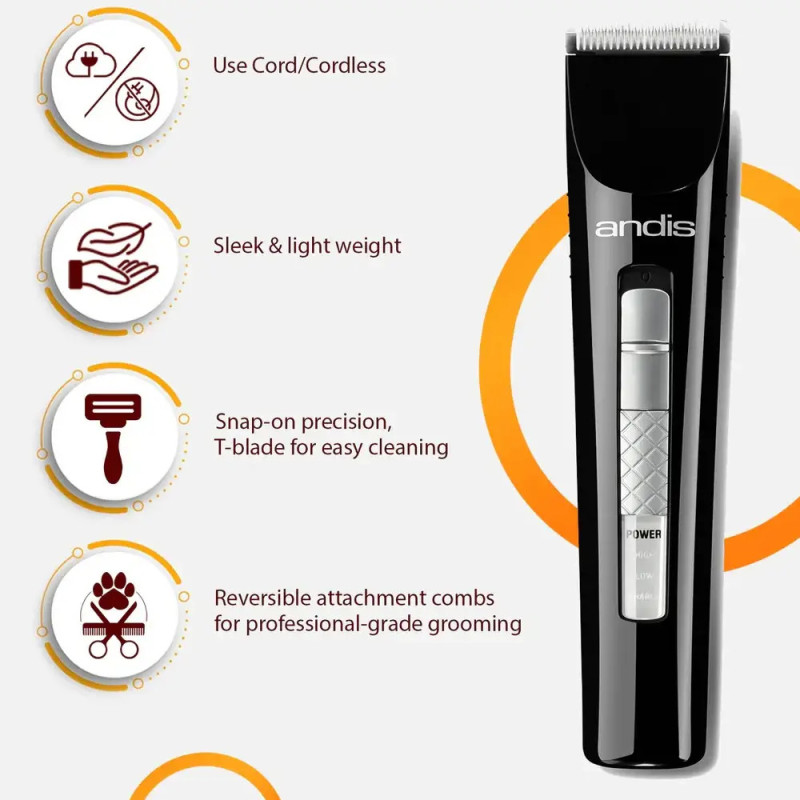 A Andis MultiTrim é a trimmer ideal para retoques de precisão e acabamentos profissionais, perfeita para patas, focinho, orelhas e limpeza pré-cirúrgica. Compacta, leve e silenciosa, foi desenvolvida para garantir máximo controlo, conforto e resultados impecáveis em todos os tipos de pelagem.
