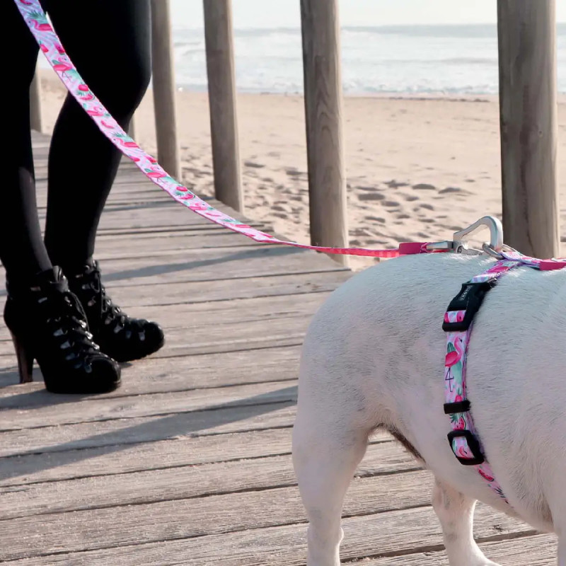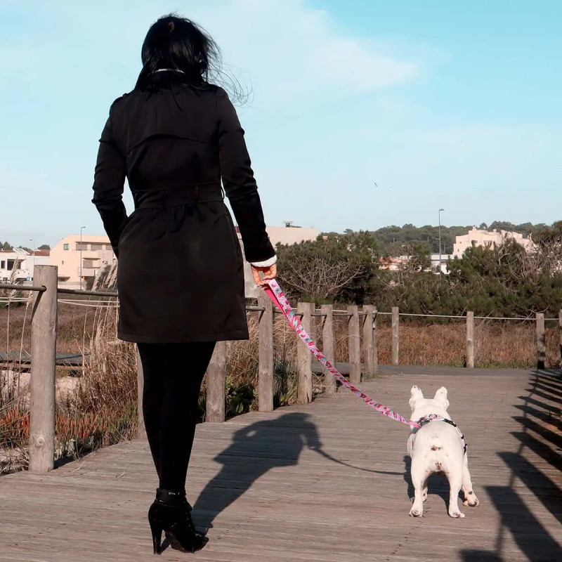 Esta trela é feita de nylon resistente e com neoprene na alça para um toque confortável e suave. O gancho de 360º possui um tratamento de segurança exclusiva que trava muito rapidamente.