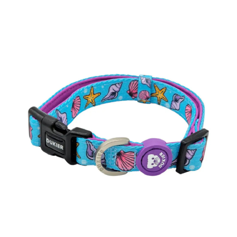 As coleiras da Dukier são fabricadas em nylon de alta qualidade, resistente e durável, adequada para as aventuras mais ativas do seu animal de estimação. Possui um forro interior de neopreno macio para garantir que o seu animal de estimação está confortável e protegido contra irritações. O fecho das coleira de clique evita que a coleira se solte acidentalmente. Inclui também uma argola metálica duradoura na qual pode prender a trela ou a placa de identificação do seu animal de estimação Esta coleira é fácil de limpar e não liberta pigmentos ou resíduos.