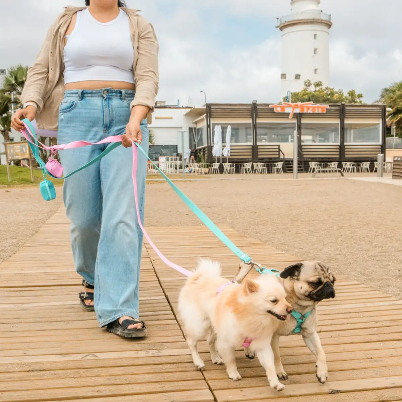 A trela perfeita para os passeios de verão na praia. O seu material impermeável resiste a tudo, tal como o seu mosquetão reforçado com fecho duplo. Além disso, é super macio para que não se magoe mesmo com os puxões mais fortes.