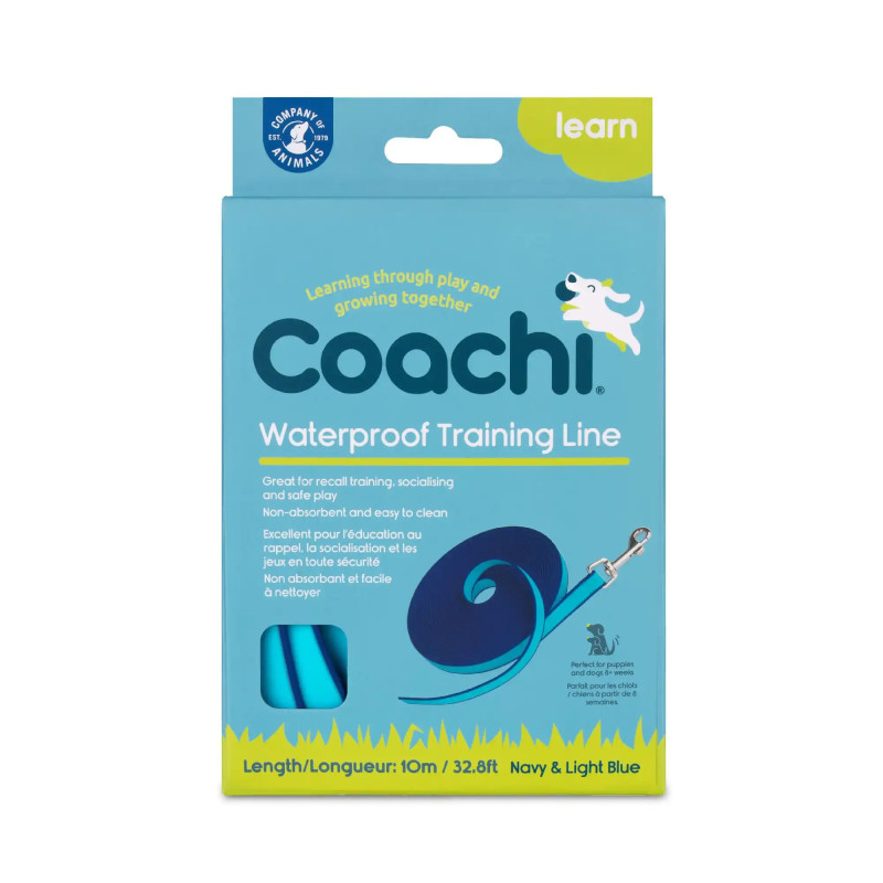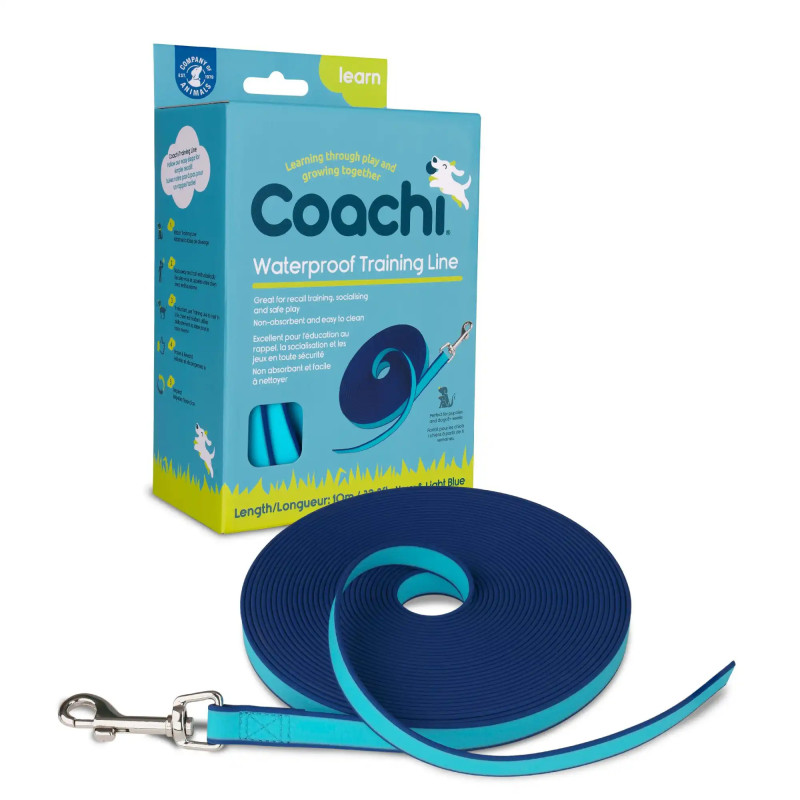 A trela longa impermeável Coachi de 10 metros é a escolha ideal para o treino e os passeios com o seu cão, em qualquer condição climatérica. Concebida para oferecer liberdade com controlo, permite que o seu cão explore o ambiente de forma segura, sem comprometer a eficácia do treino.