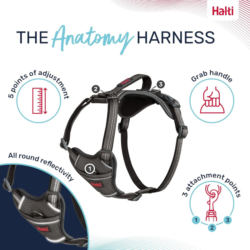 O Halti Anatomy Harness foi especificamente concebido para evitar essa limitação, oferecendo conforto e mobilidade total.