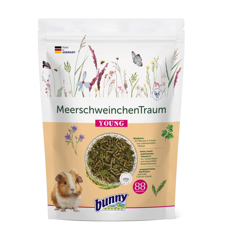 O Guinea Pig Dream YOUNG é um alimento completo especialmente desenvolvido para porquinhos-da-índia jovens (até aos 5 meses), garantindo todos os nutrientes necessários para um crescimento saudável e equilibrado. A sua fórmula única combina 63 plantas e ervas provenientes de prados naturais não tratados, criando uma alimentação variada e rica, semelhante à dieta que estes pequenos animais encontrariam na natureza.