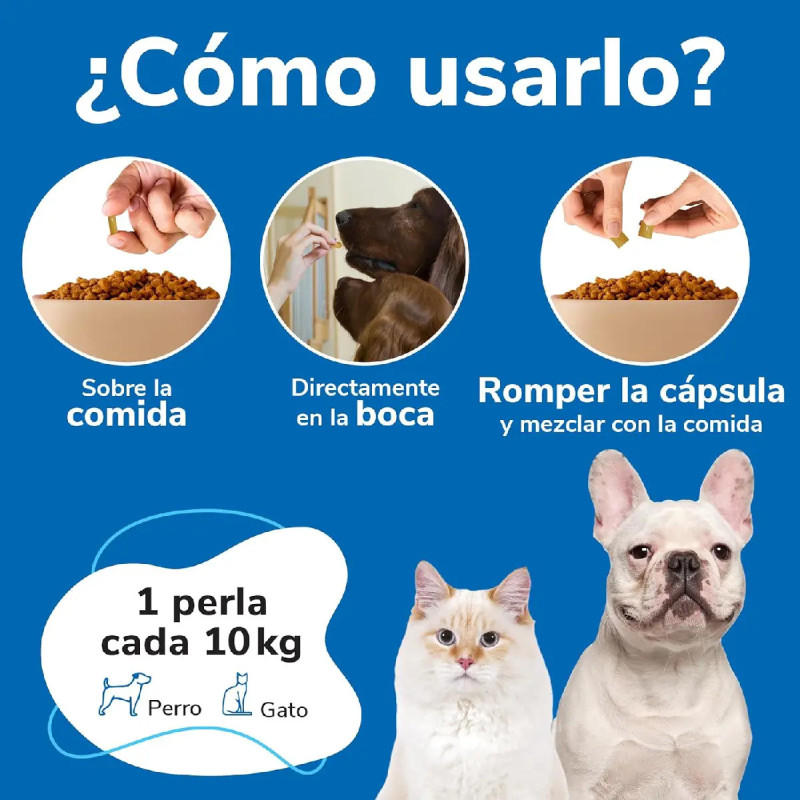 Cães e gatos: toma única de 1 cápsula/10 kg de peso por dia, com ou sem alimento. Administrar durante 4 a 8 semanas.