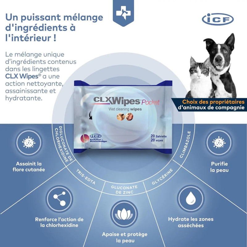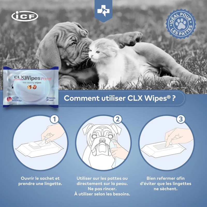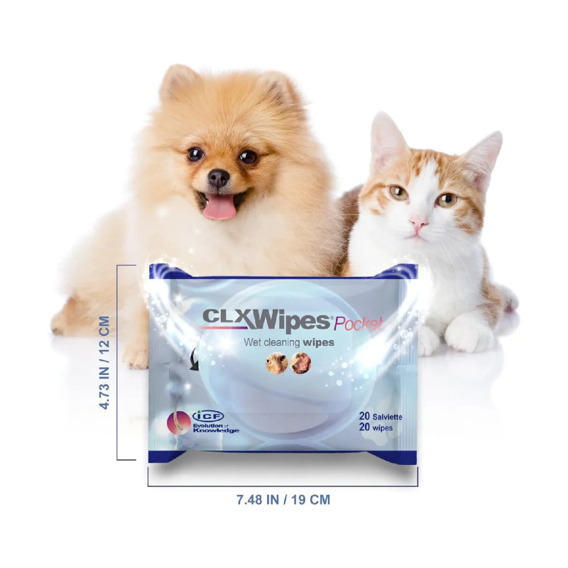 Os toalhetes CLX são toalhetes de limpeza duráveis, formulados especialmente para a higiene diária de cães, gatos e pequenos animais de estimação. Com propriedades antibacterianas e antifúngicas, ajudam a manter a pele limpa, saudável e protegida.