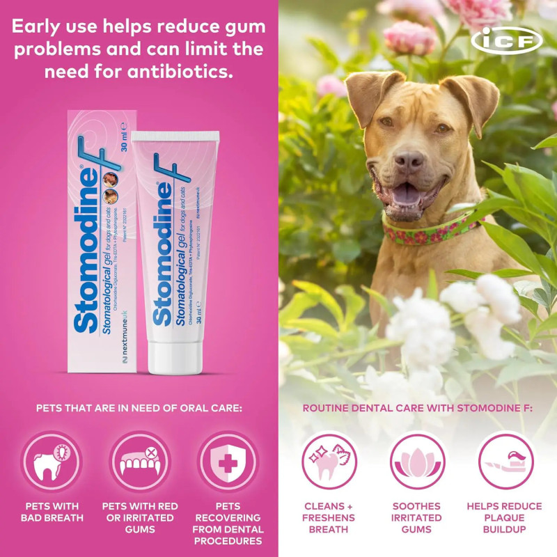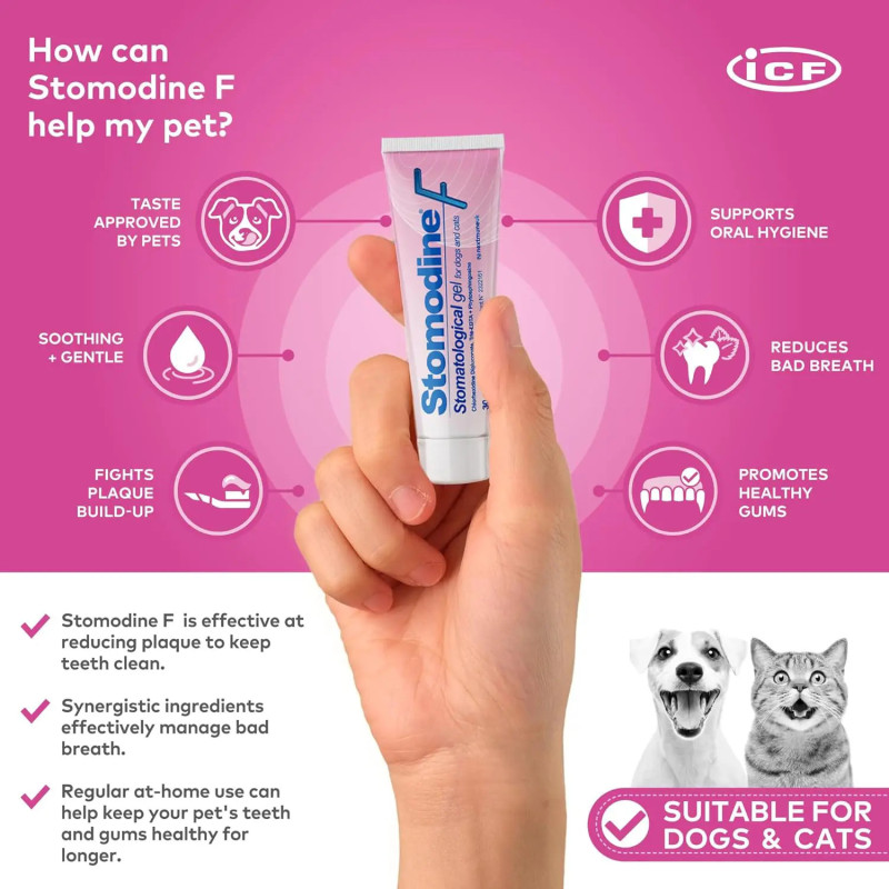 Trata-se de um gel bioadesivo com ação antisséptica e calmante. Não possui cheiro nem sabor, e a sua textura suave em gel é bem tolerada pelos animais. É recomendado no tratamento periodontal, especialmente após extrações dentárias, ou para o controlo da gengivite. Também é frequentemente indicado no tratamento da gengivite-estomatite crónica.